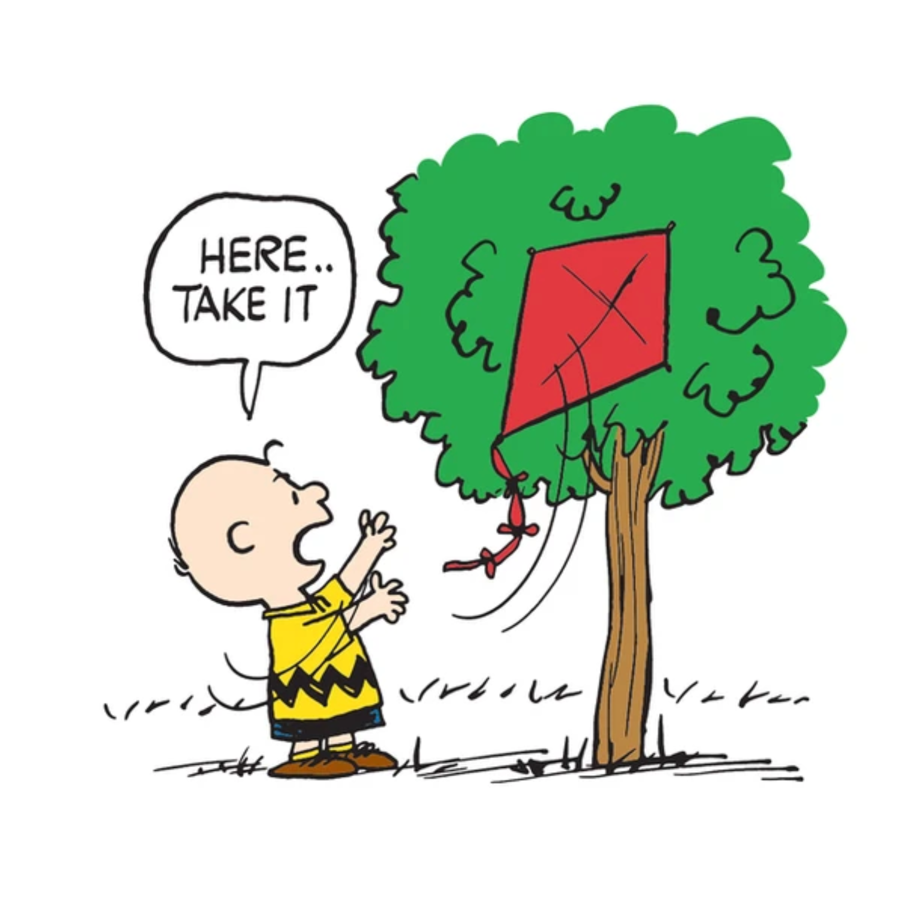 아, 찰리 브라운이 연을 날릴 수 있다면 얼마나 좋을까요… 하지만 “연을 먹는 나무”가 있기 때문에 쉽지 않죠.