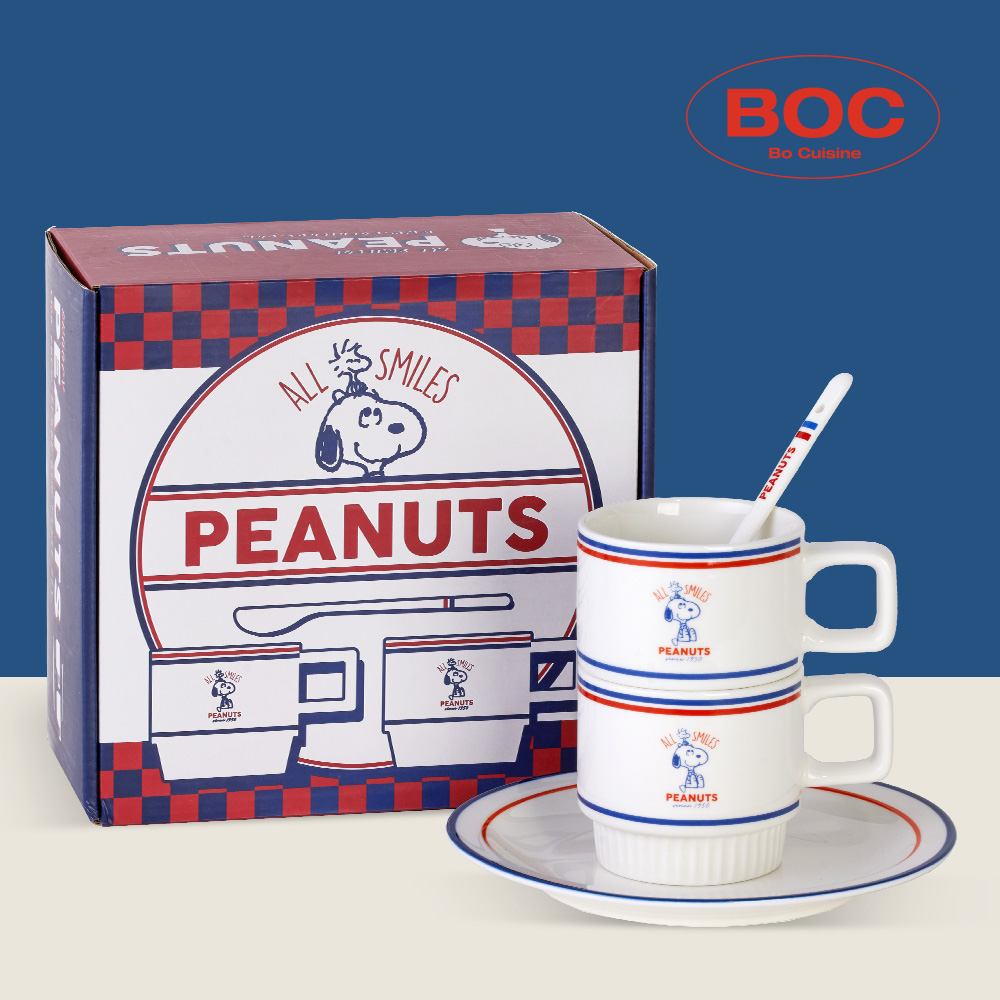 스누피 빈티지 머그컵 코펠세트 (머그컵 300ml 2p+원형접시 1p+스푼 1p)