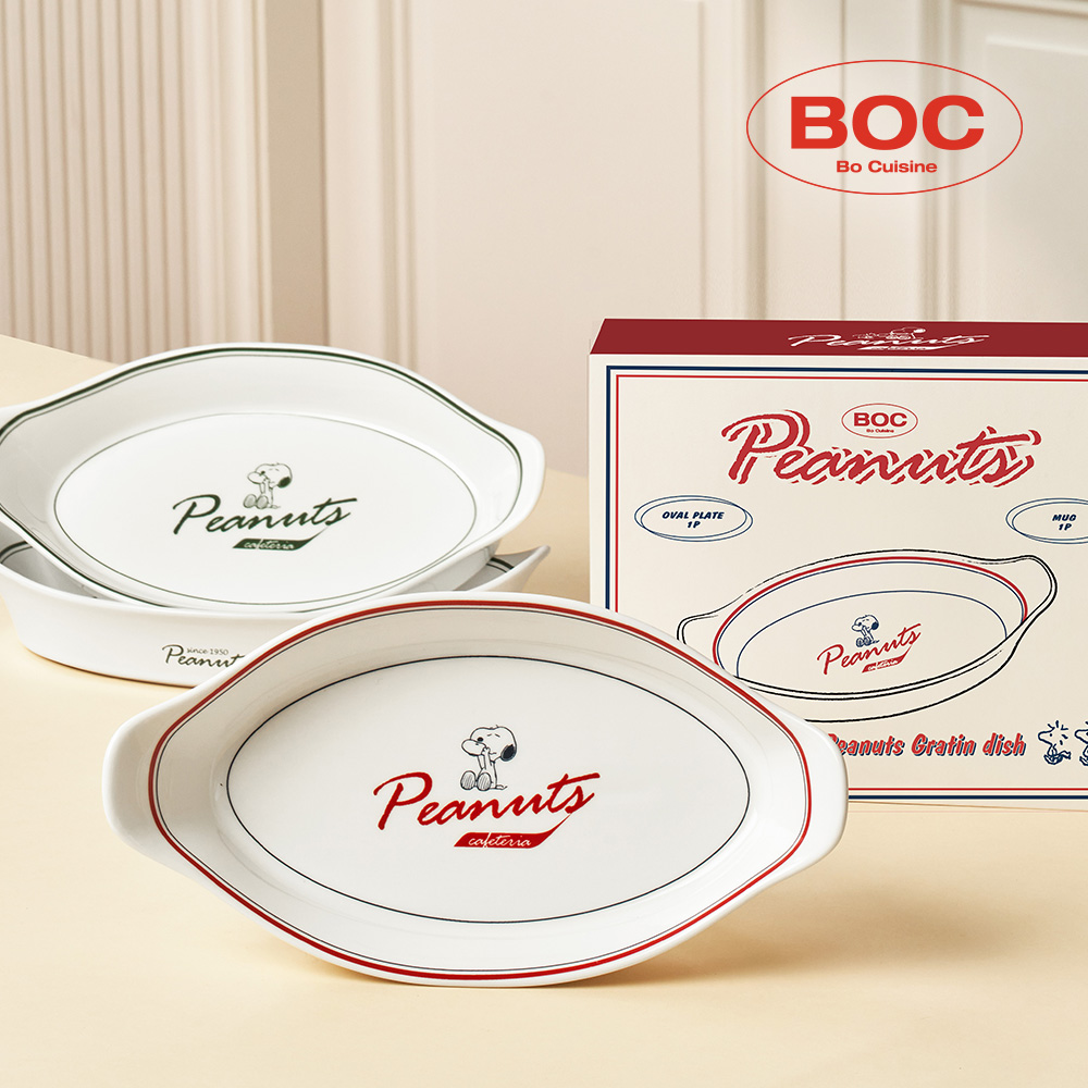 스누피 빈티지 세라믹 양손핸들 타원 오븐 그라탕볼