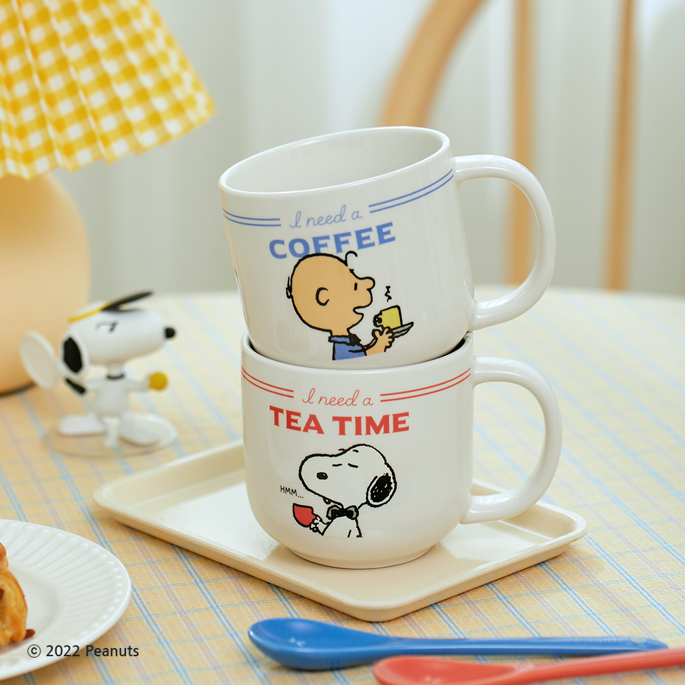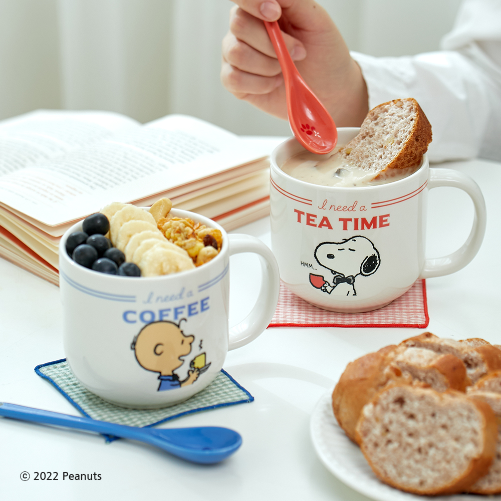 피너츠 스누피 데일리 머그 2P+스푼 2P 세트