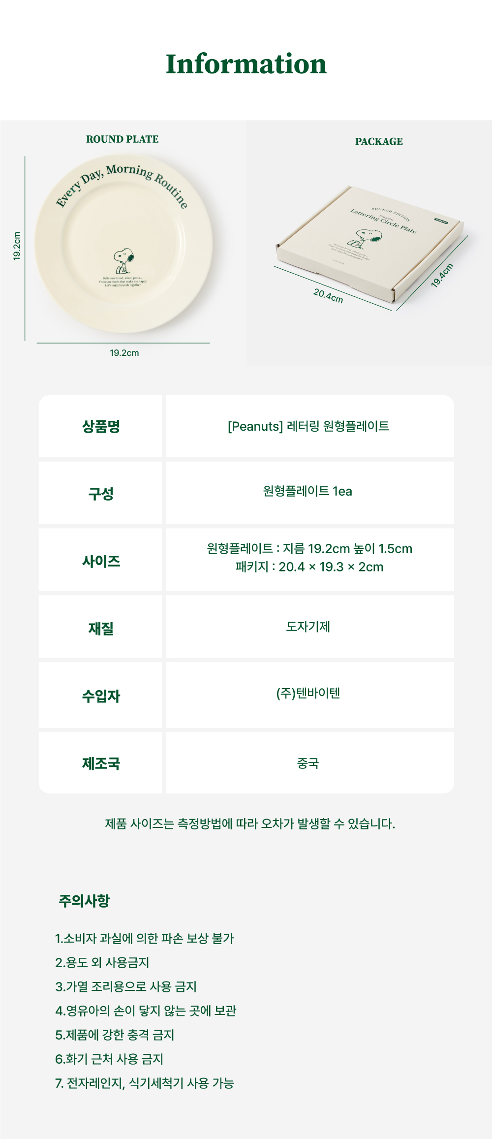 피너츠 레터링 원형 플레이트