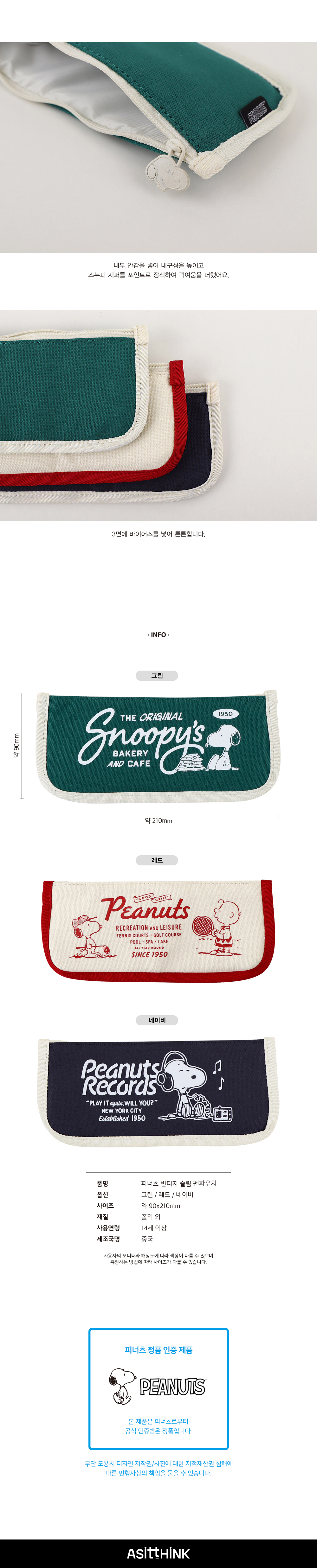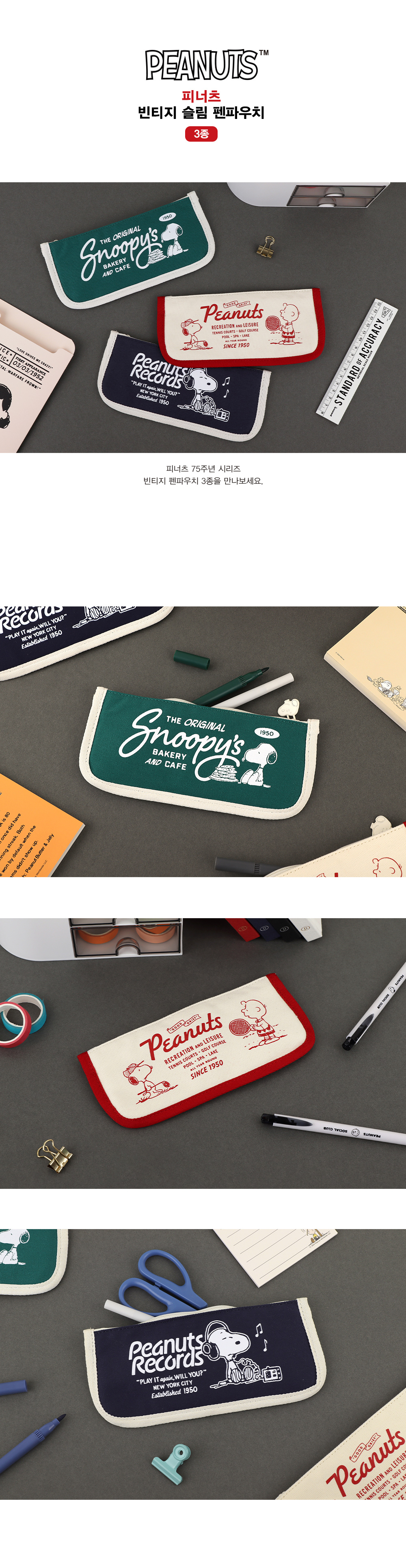피너츠 스누피 75주년 슬림 펜 파우치 (3 option)