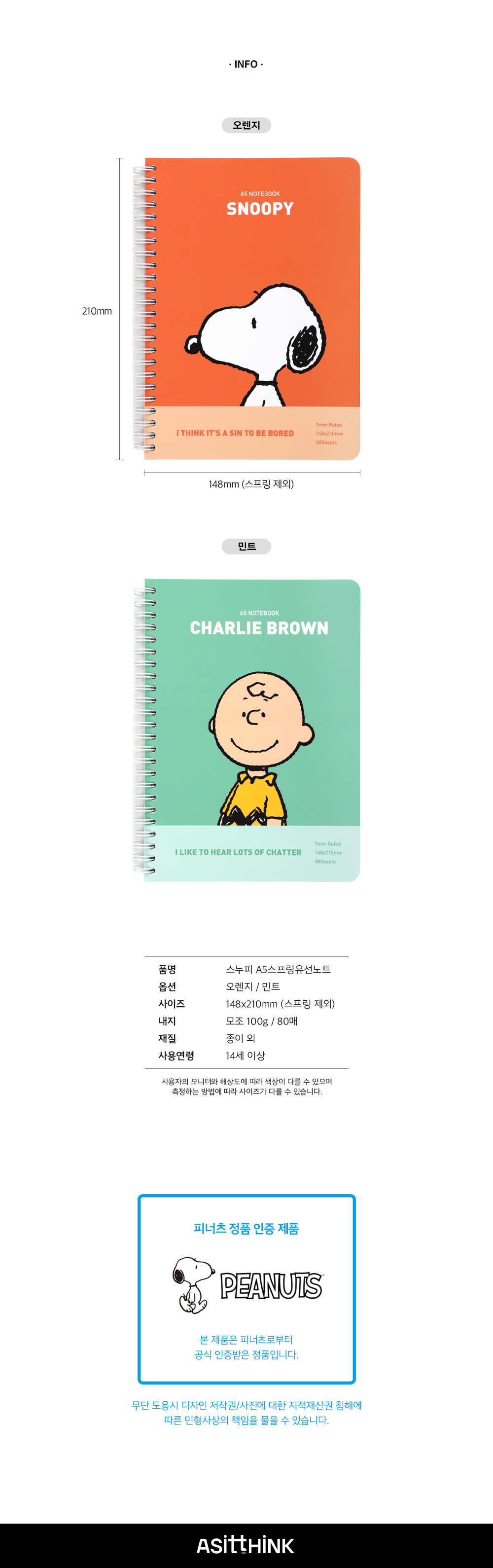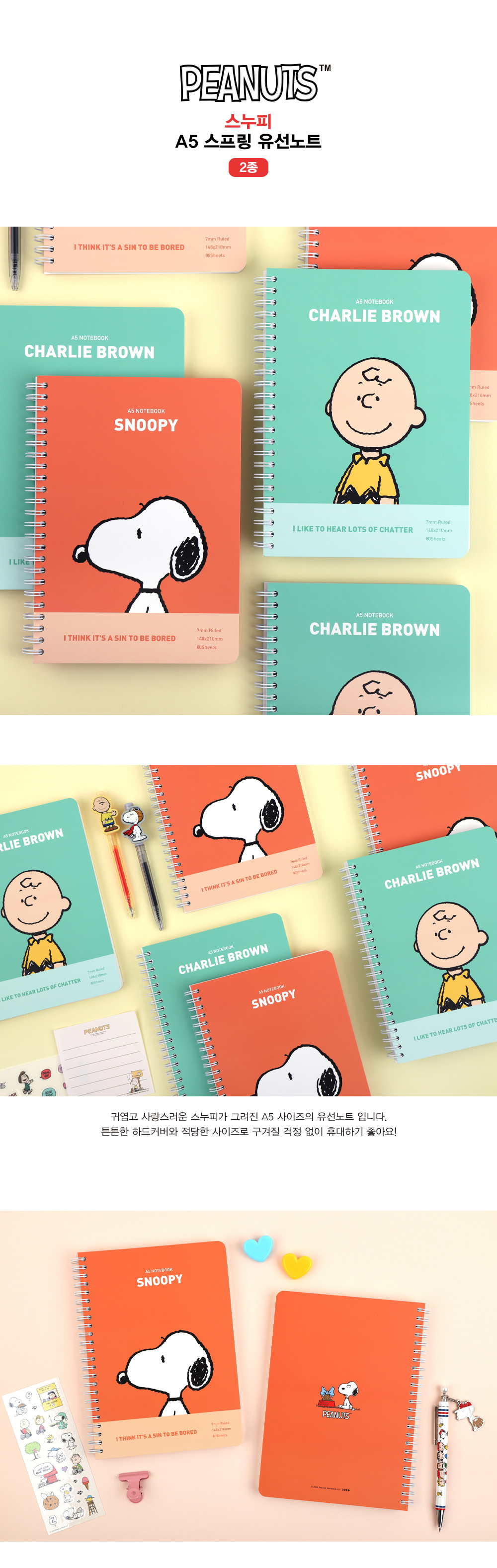 스누피 A5 스프링 유선노트 (2 option)
