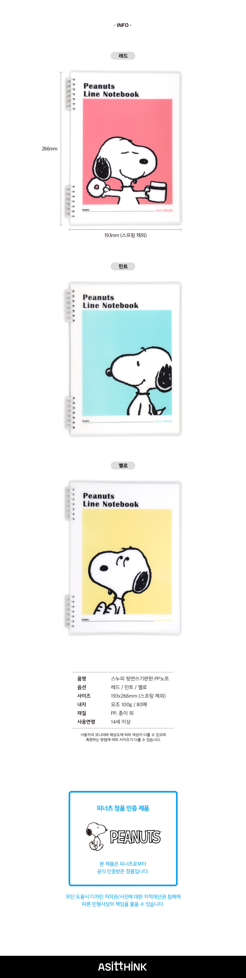스누피 뒷면 쓰기 편한 PP노트 (3 option)