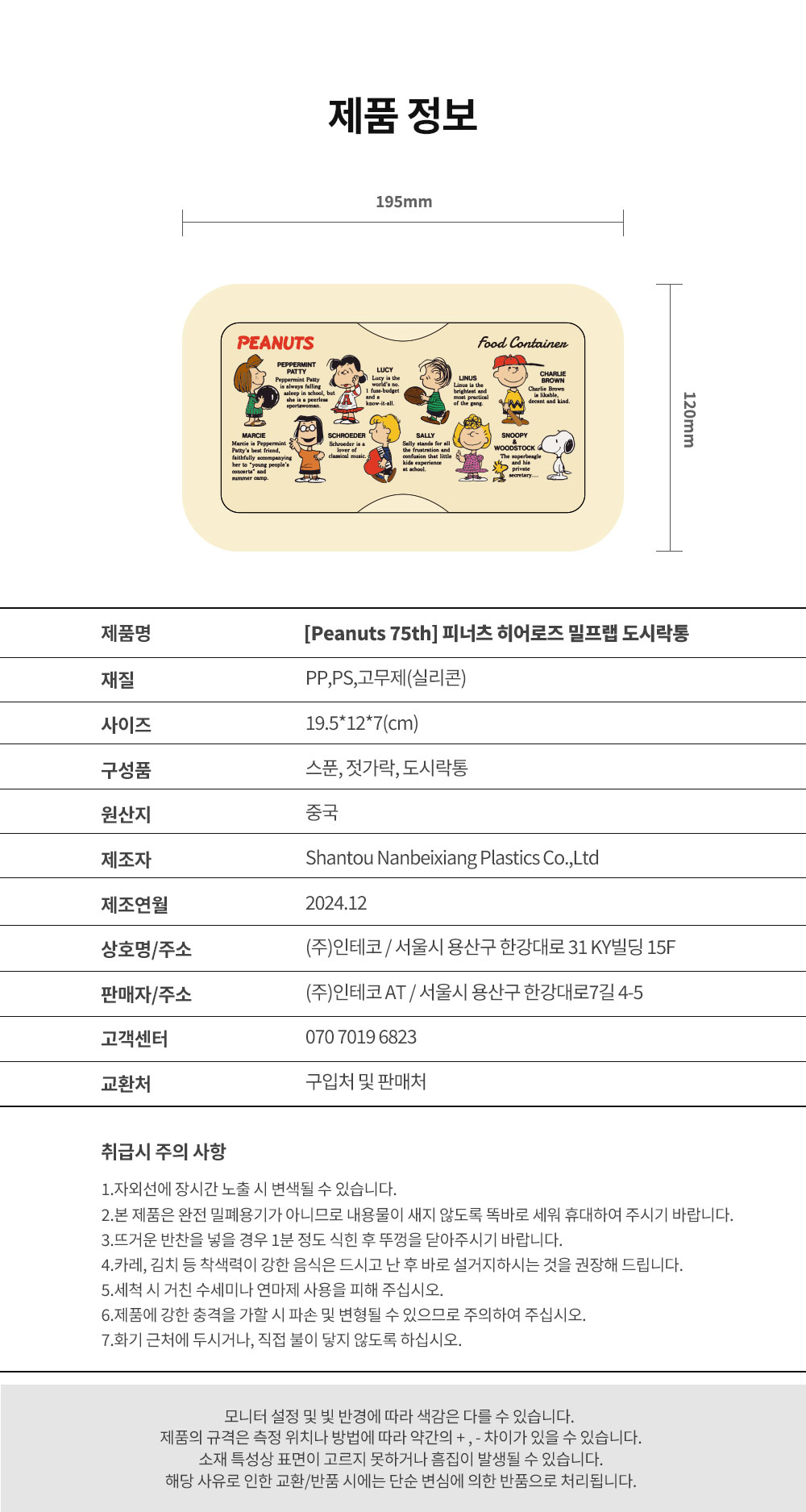 피너츠 75주년 히어로즈 밀프랩 도시락통