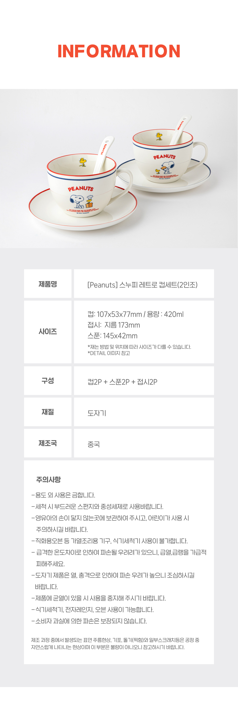 스누피 레트로 브런치 세트(플레이트+컵세트)