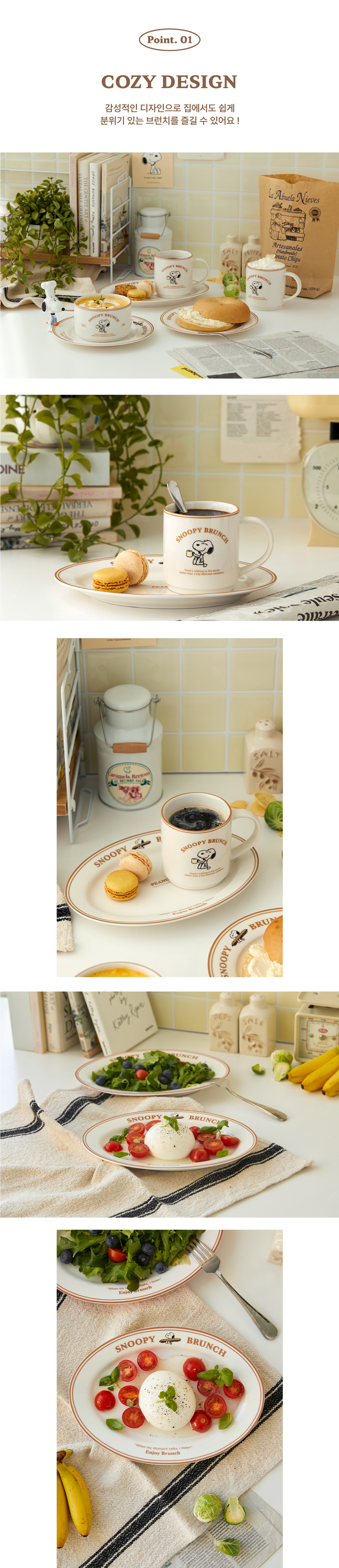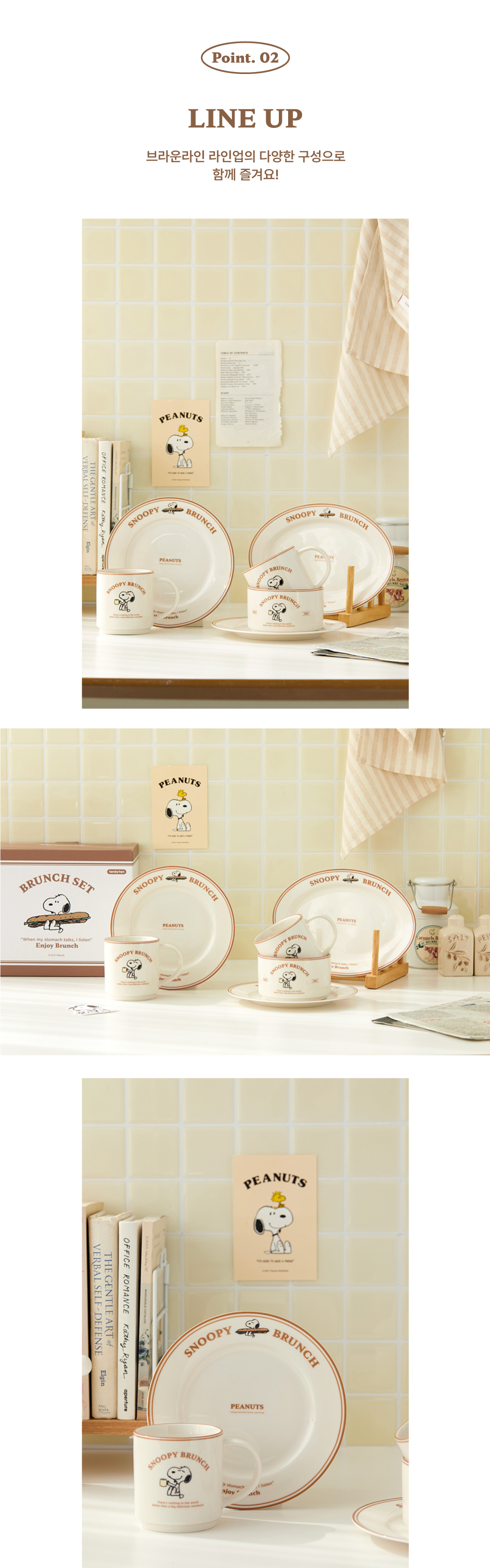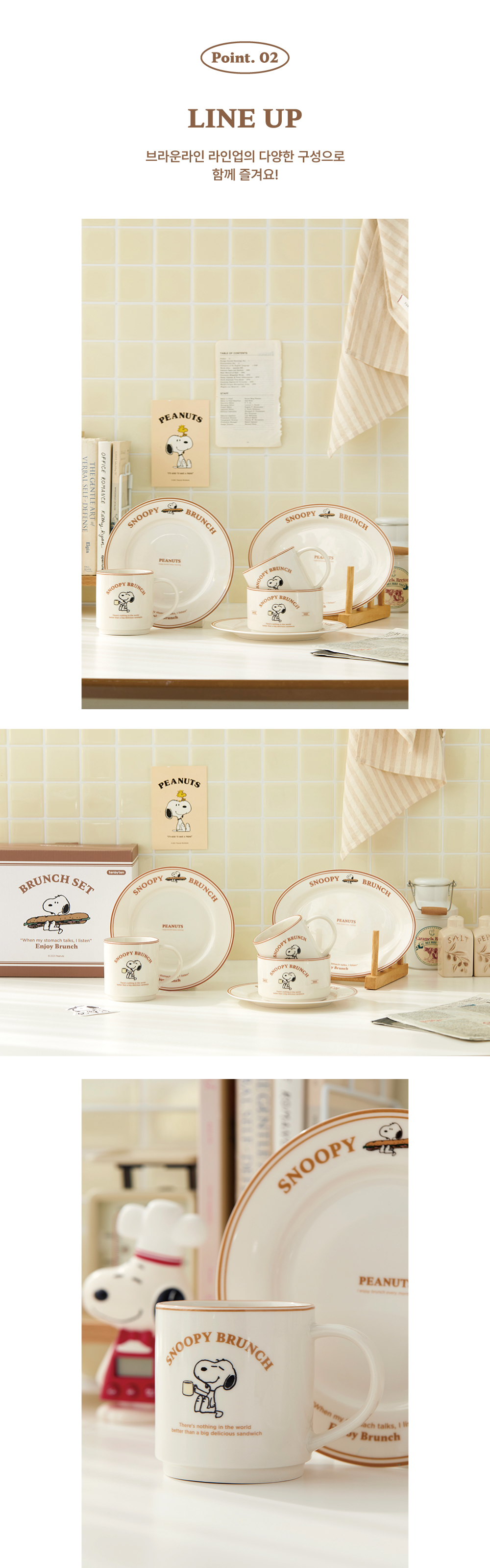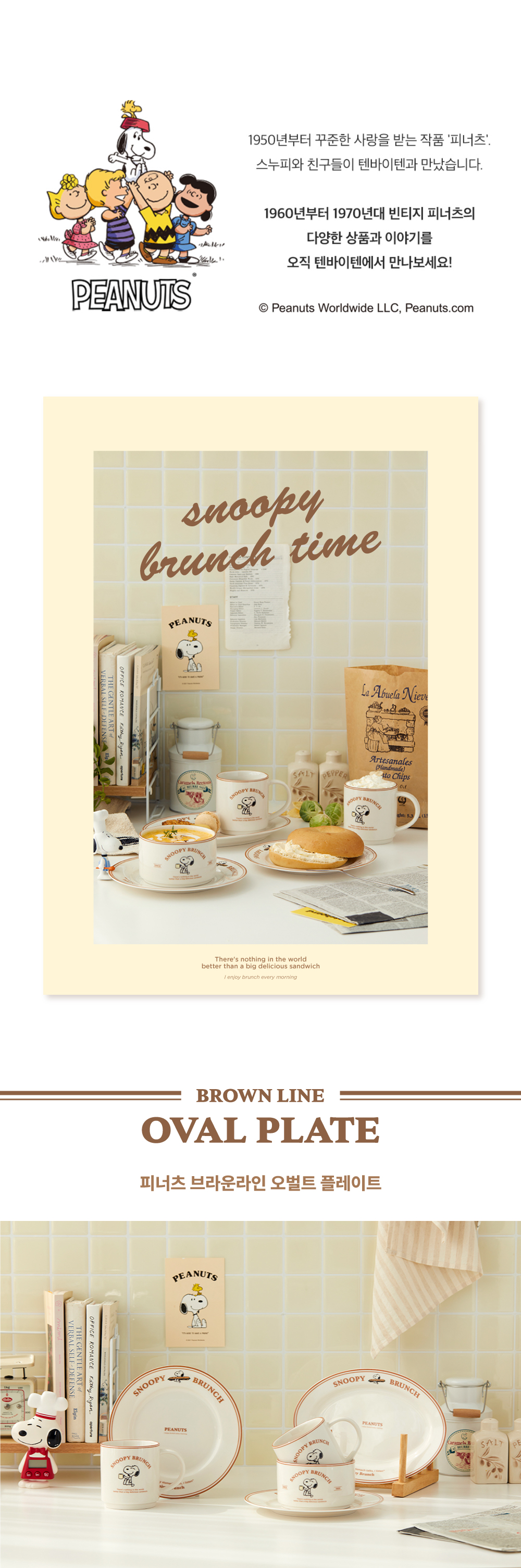 스누피 브라운 라인 브런치 세트(머그컵+오벌 플레이트+원형 플레이트)