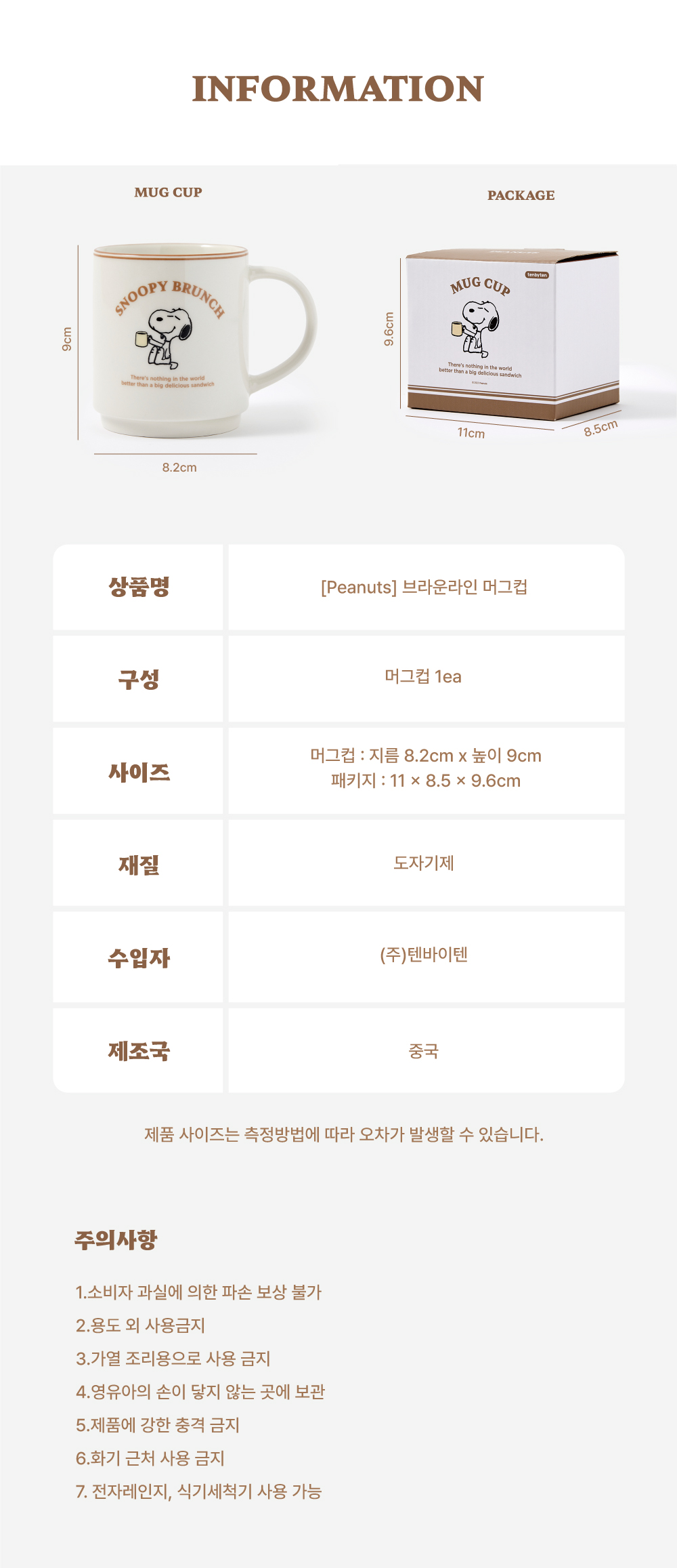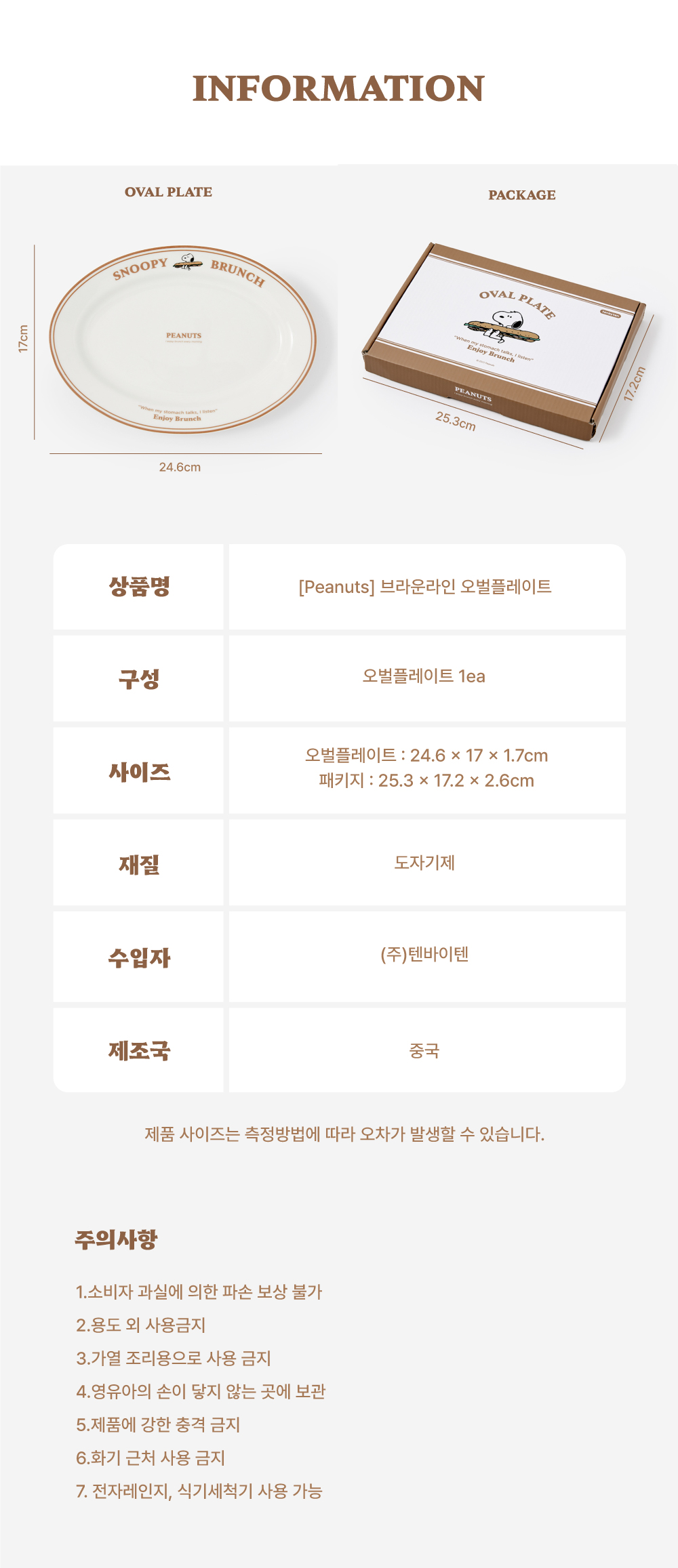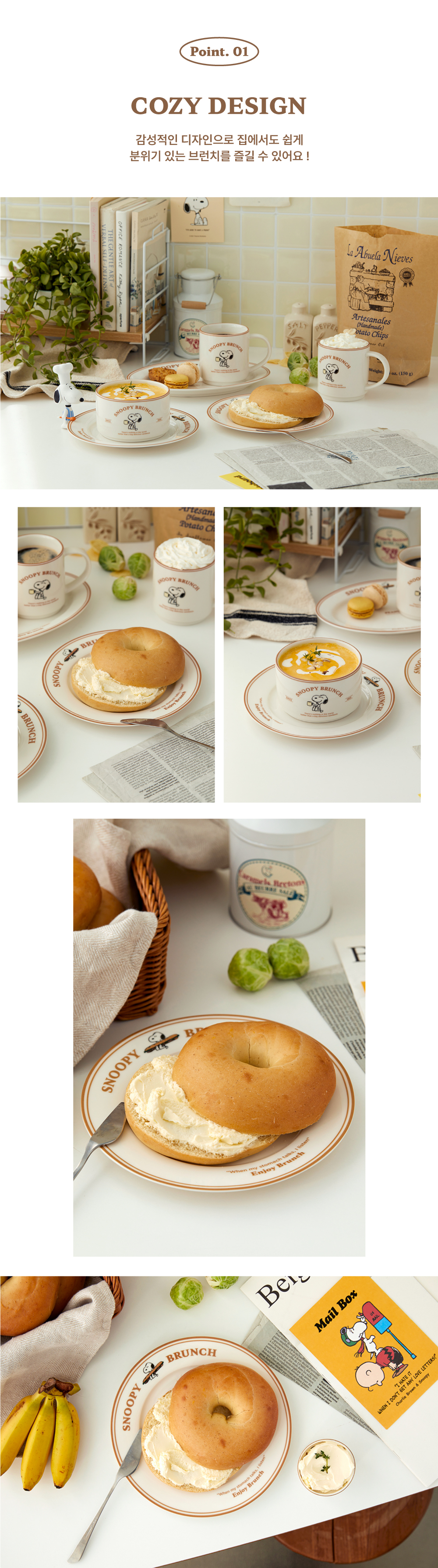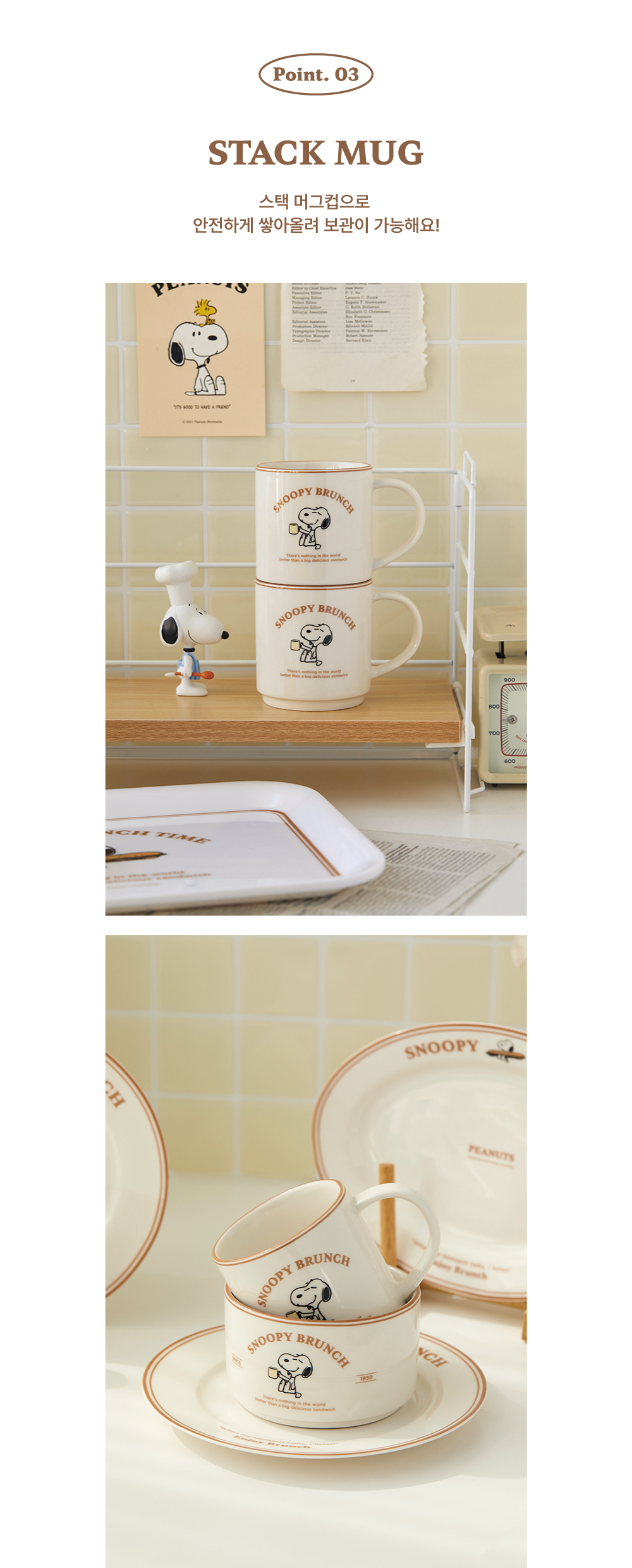 스누피 브라운 라인 브런치 세트(머그컵+오벌 플레이트+원형 플레이트)