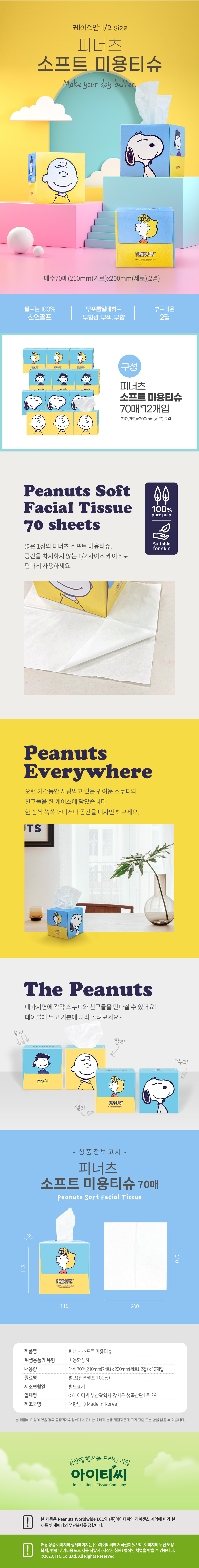 피너츠 스누피 소프트 미용티슈 12입 1박스