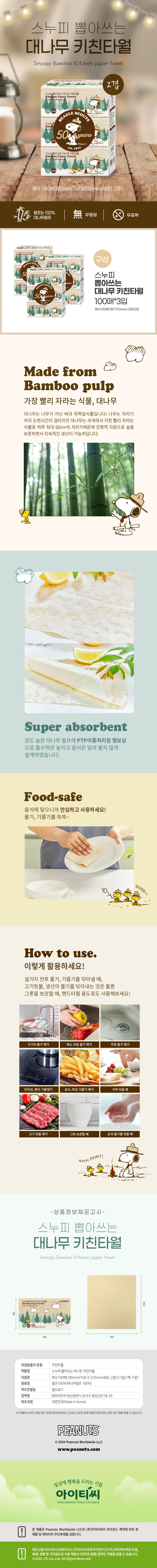 피너츠 스누피 대나무 뽑아쓰는 키친타월 3입 3팩