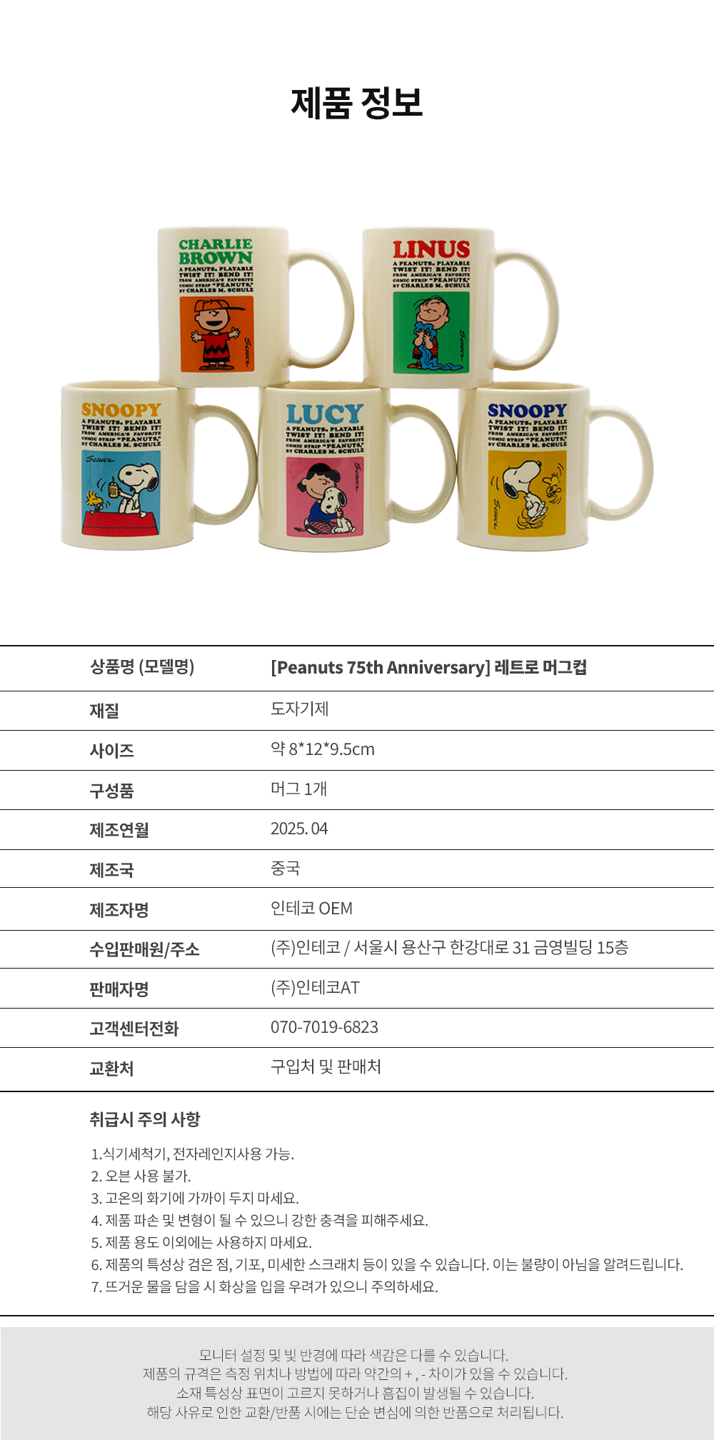 [Peanuts 75th] 레트로 머그컵 (5종)