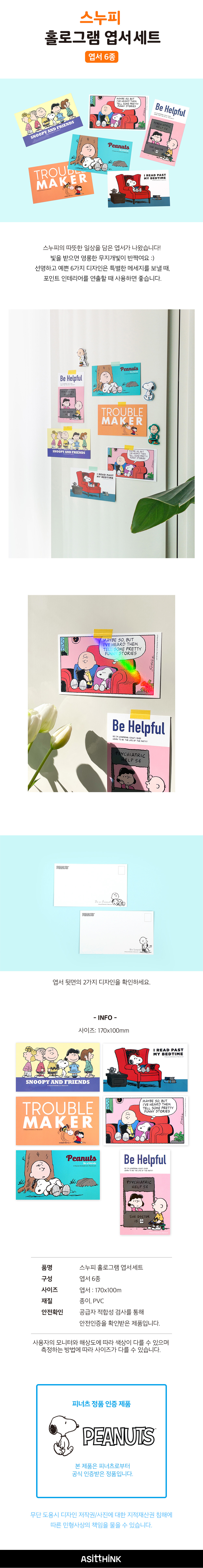 피너츠 스누피 홀로그램 엽서 6종 세트