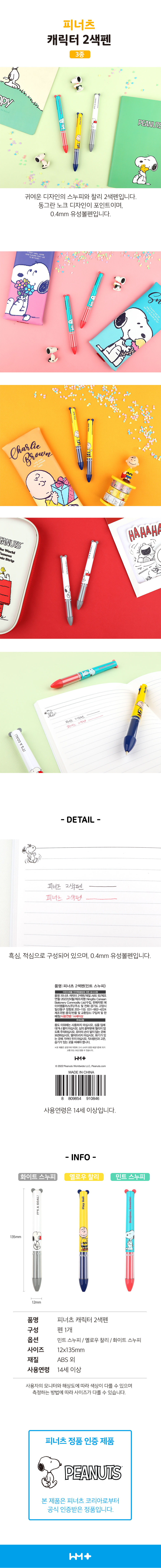 피너츠 캐릭터 2색펜 (3 option)