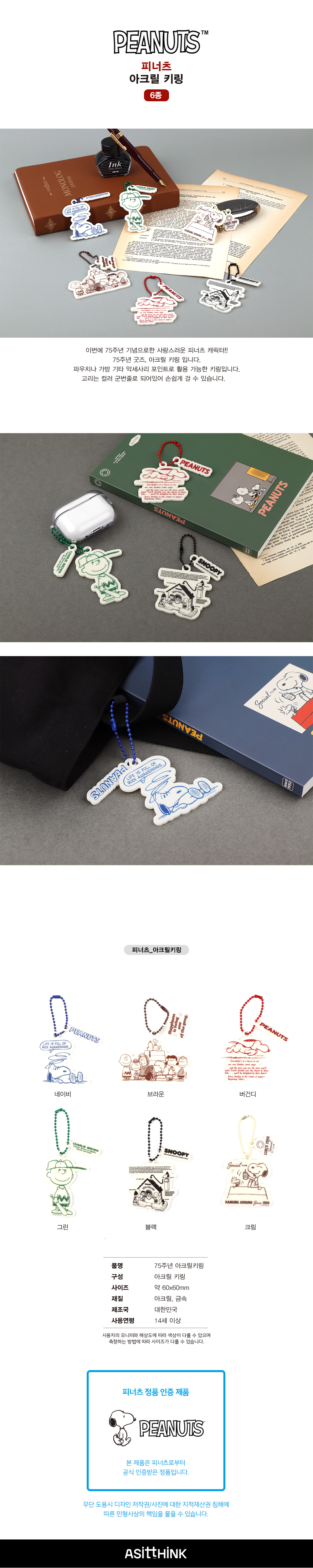 [Peanuts 75th] 피너츠 아크릴 키링 (6 option)