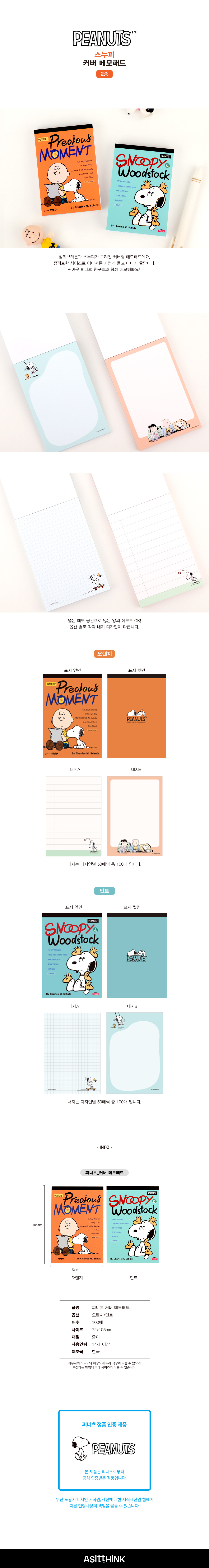 피너츠 스누피 커버 메모패드 (2 option)