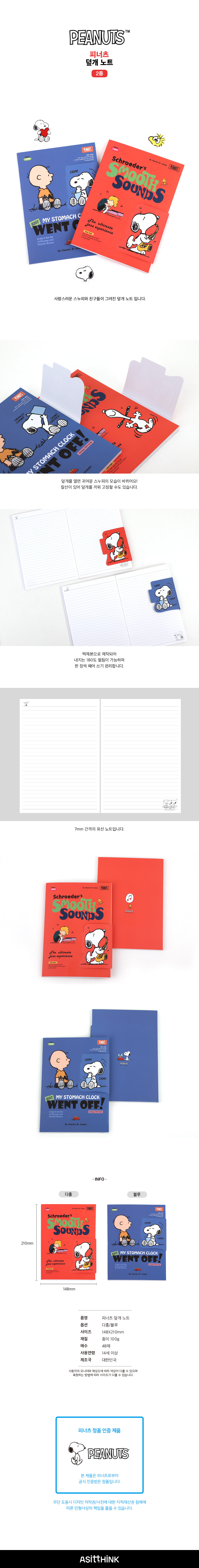 피너츠 스누피 덮개노트 (2 option)