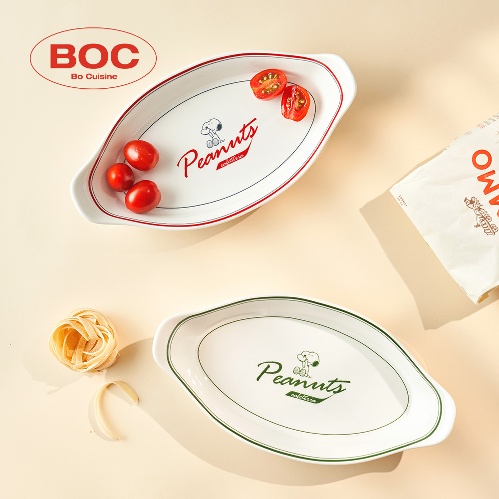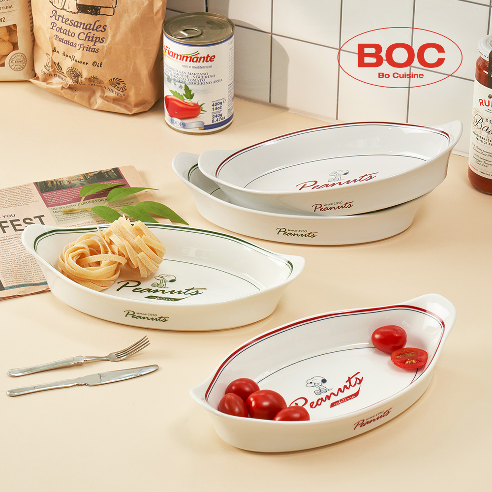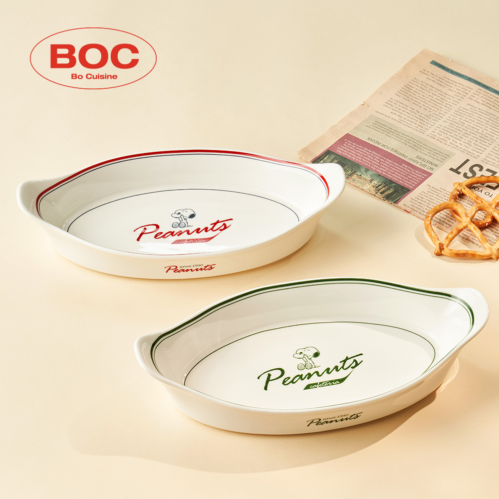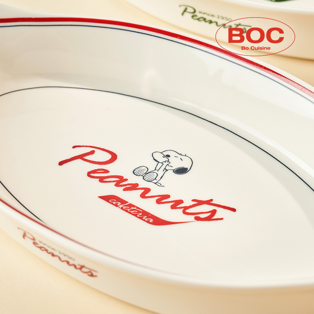 스누피 빈티지 세라믹 양손핸들 타원 오븐 그라탕볼