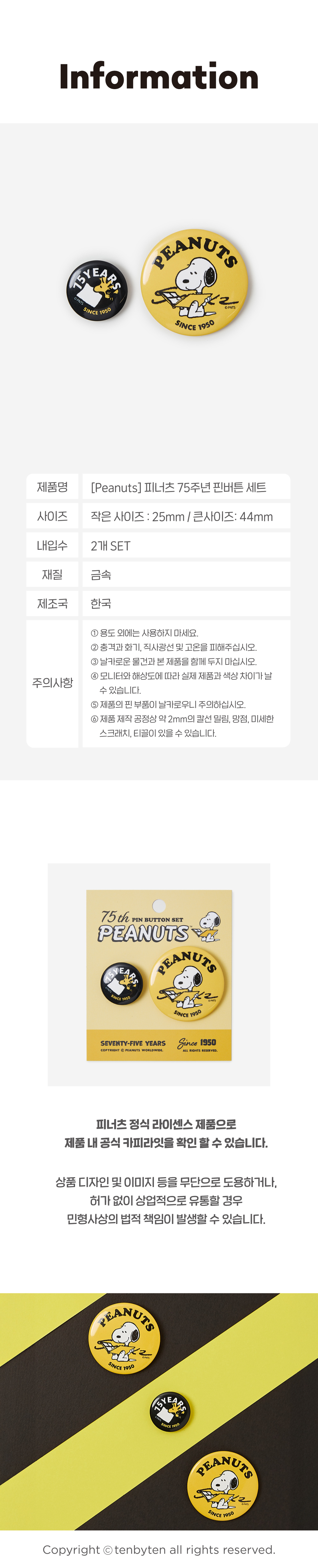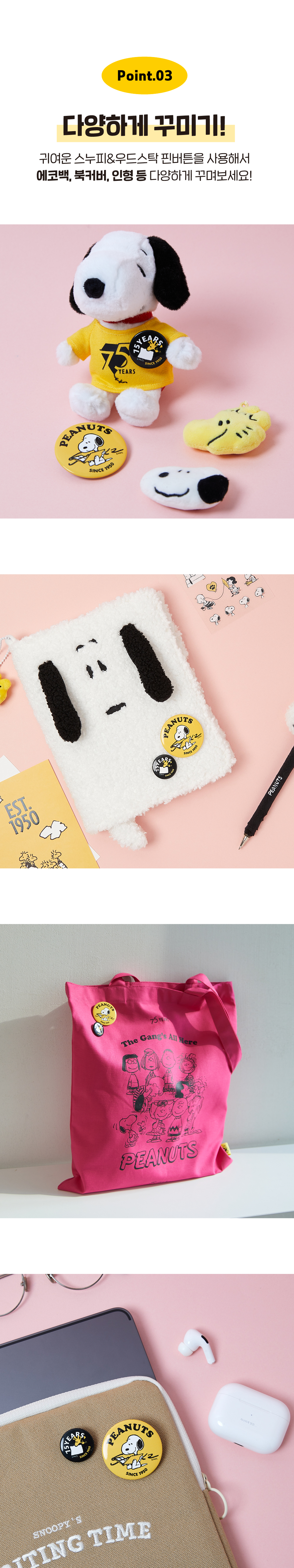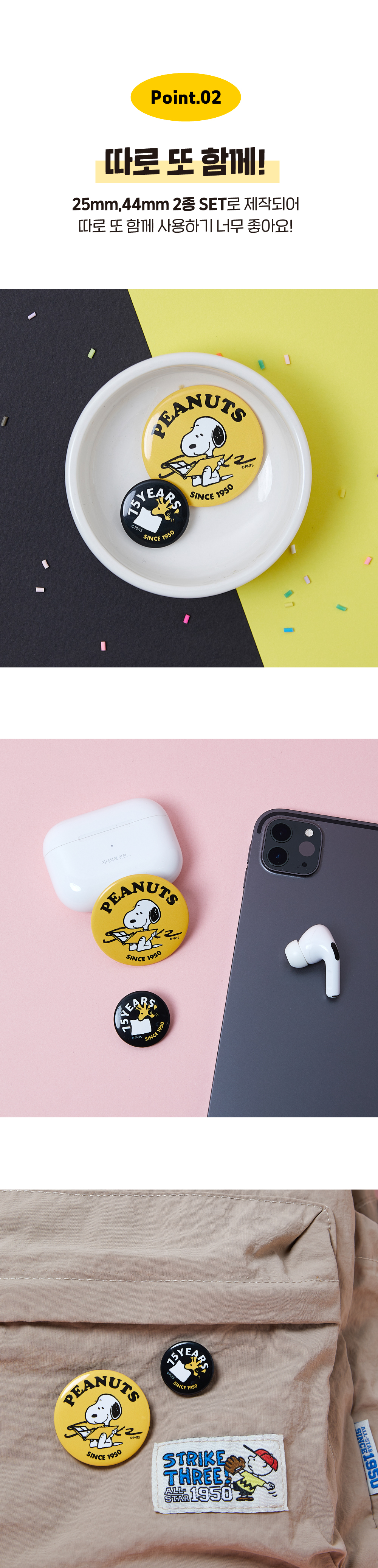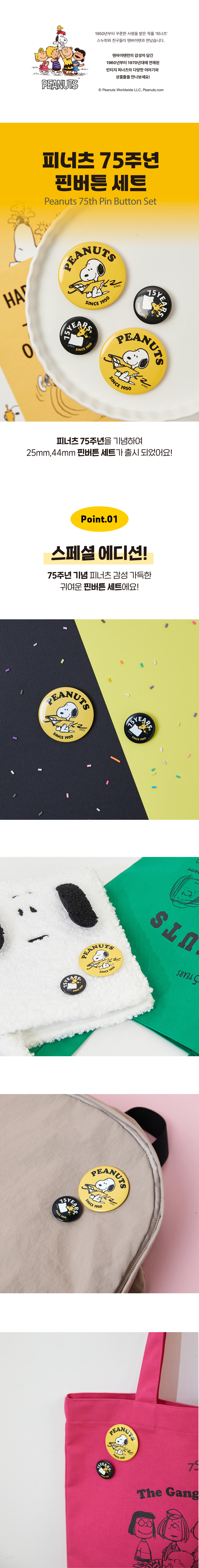 [Peanuts 75th] 피너츠 75주년 핀버튼 세트 (25-44mm)