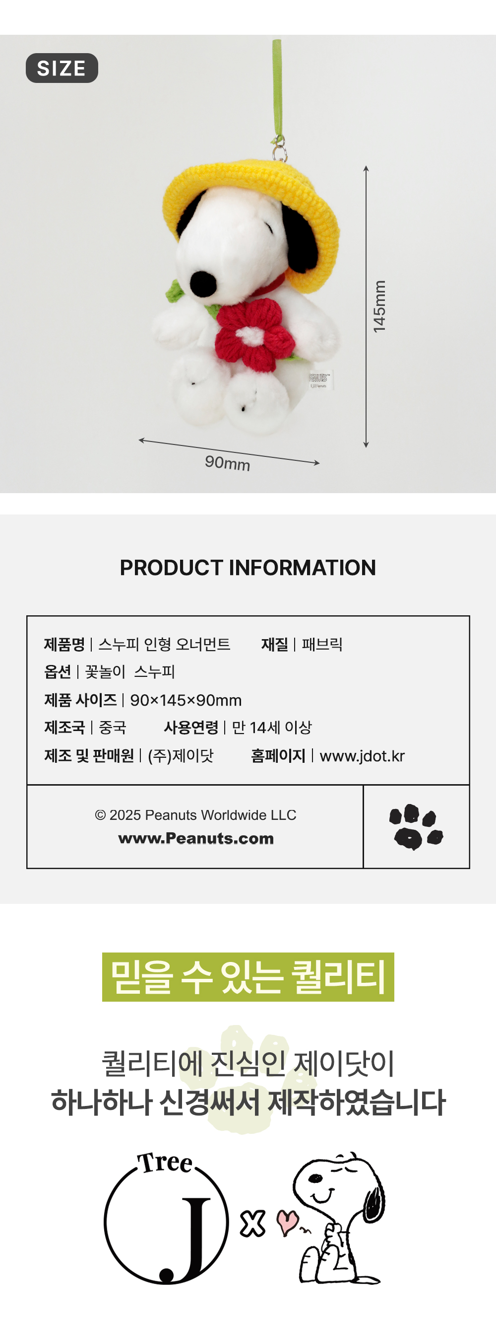 봄옷 인형 오너먼트 (꽃놀이 스누피)