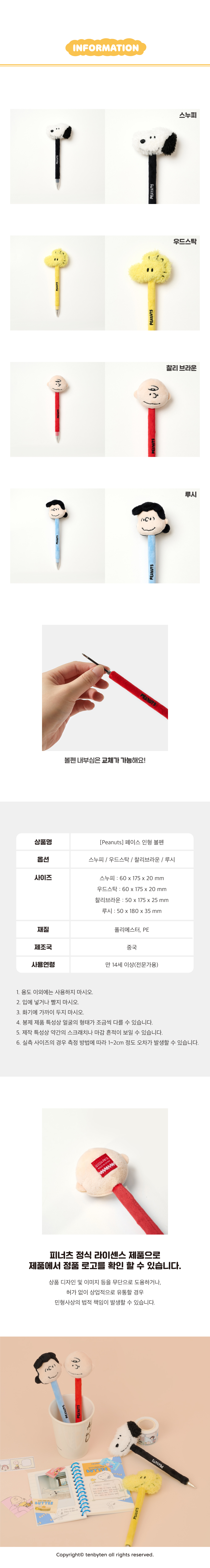 피너츠 페이스 인형 볼펜 (4종)