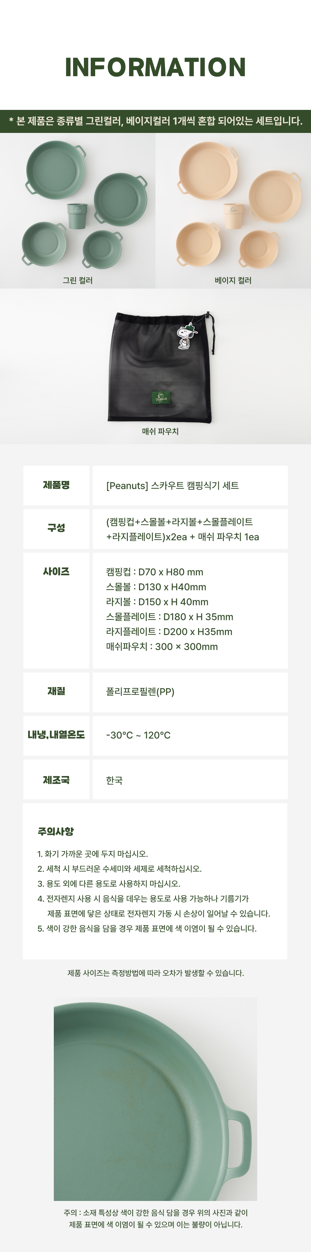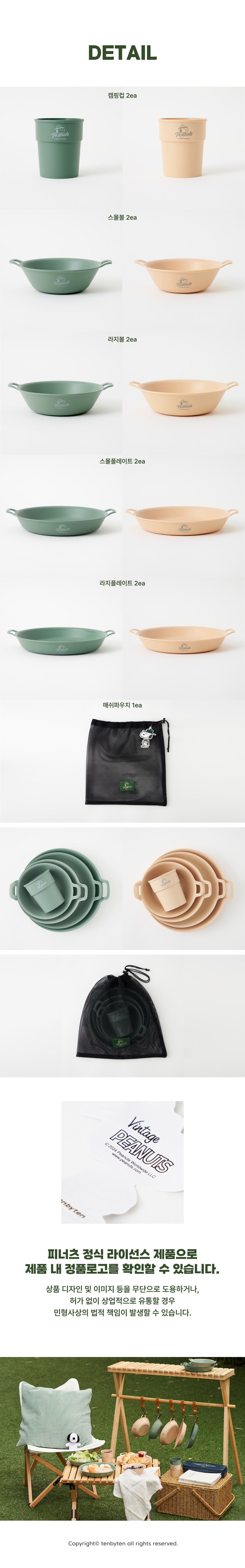 피너츠 스카우트 아웃도어 식기 2인 10P 세트 (실내 겸용)