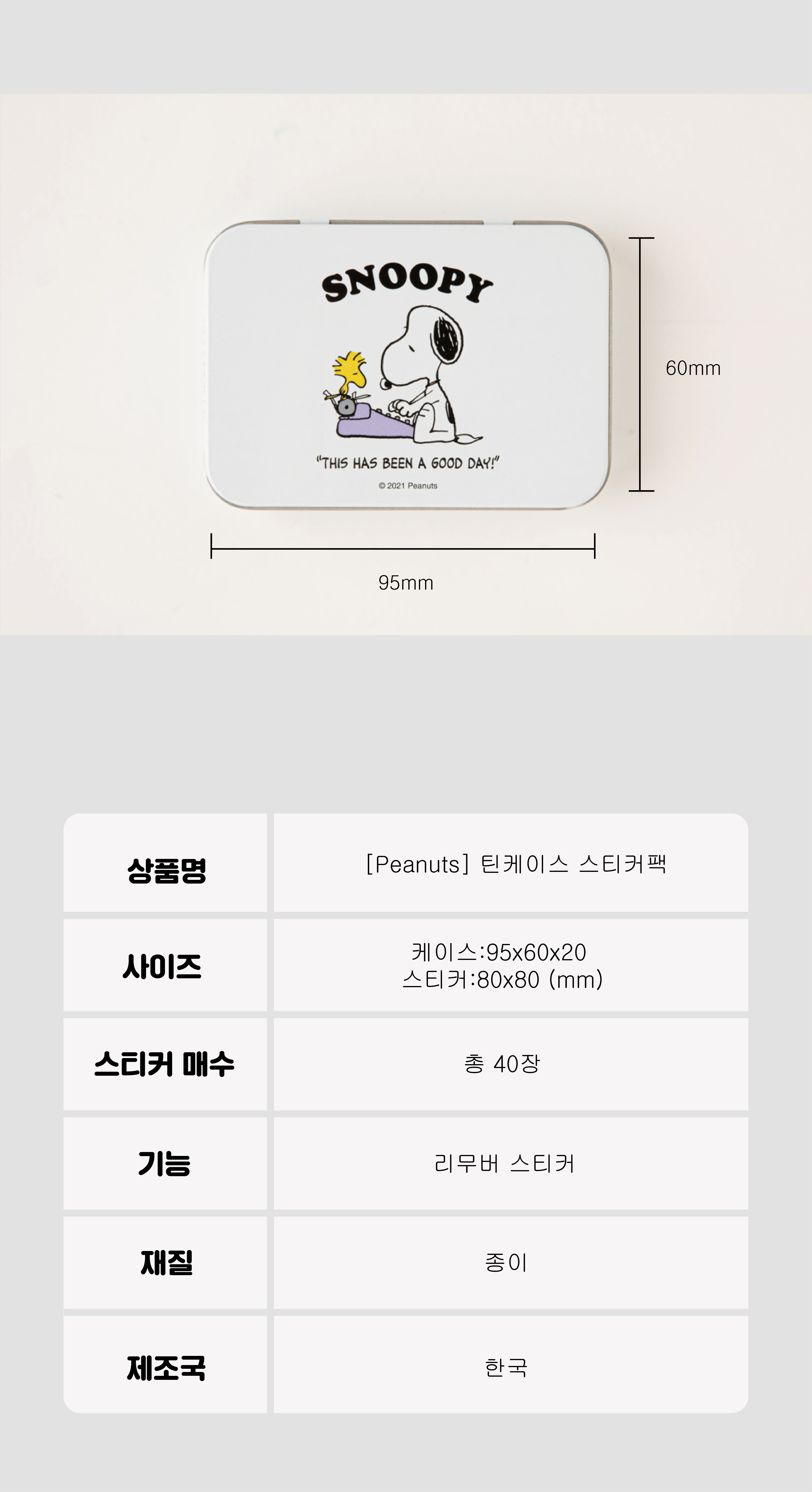피너츠 스누피 틴케이스 스티커팩 (40매)